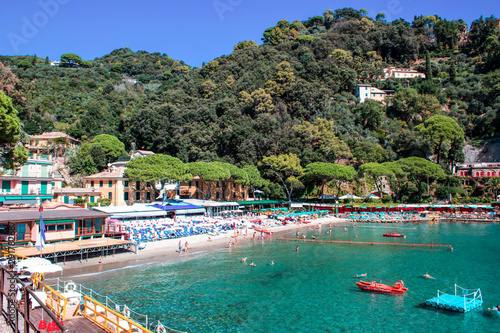 beach known as paraggi near portofino in genoa on a blue sky and sea background