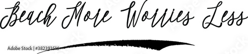 Beach More Worries Less Brush Calligraphy Handwritten Typography Text on White Background