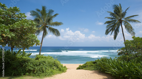 Beach Path with Palm Trees and Ocean View