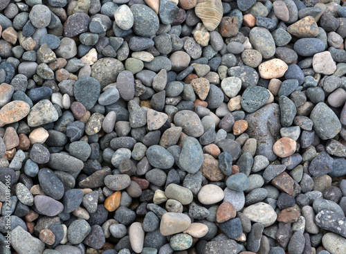 Beach stones background. Top view.