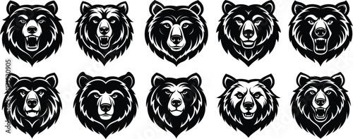 bear, head, logotype, icon, vector, vignetting, abstract, isolated, design, nature, illustration, silhouette, vintage, animal, art, label, concept, black, cartoon, sport, forest, face, image, grizzly, drawing, wildlife, predator, graphic design