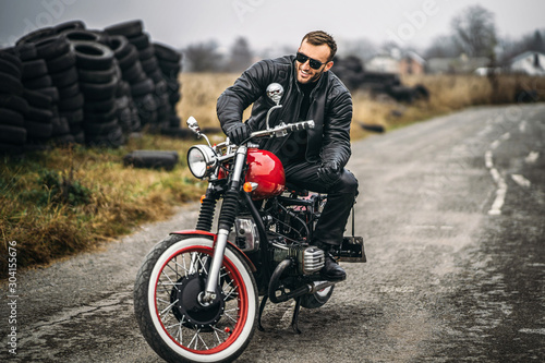 motorcycle, bike, adult, road, male, stylish, man, beard, photogenic, motorbike, young, caucasian, helmet, lifestyle, biker, leather, jacket, rider, portrait, people, hipster, style, fashion, motor, vintage, happy, hobby, bearded, beauty, business, confidence, cool, danger, expression, freedom, garage, hold, hot, manly, masculine, masculinity, mechanic, modern, 1, repair, service, shop, tire, row, red