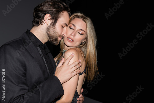 beautiful, love, party, young, adult, people, caucasian, man, dark, style, fashion, grey, hot, couple, stylish, woman, touch, grey, together, trendy, blond, sexy, attractive, sensual, photogenic, closeness, seductive, desire, passion, jacket, human relationships, fashionable, erotic, boyfriend, girlfriend, bearded, blazer, copy space, closed eyes, studio shot