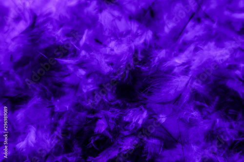Beautiful abstract blue pink feathers on darkness background and colorful purple feather texture pattern