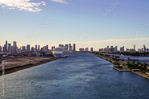 Beautiful aerial panoramic view of the city of Miami, its buildings, marina, yachts and luxurious suburbs houses