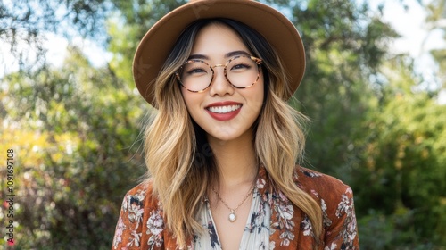 Beautiful Asian Woman Enjoying Outdoor Fashion Generative AI