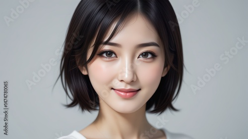 Beautiful Asian Woman with Short Black Hair Smiling, Portrait for Business Profile or Beauty Concept