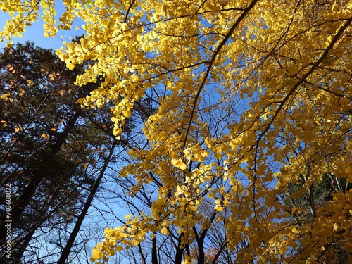 blue skies, tree, day, adventure, outdoors, green, yellow, japanese, japan, garden, colours, tree, autumn leaf, autumn landscape, fall leaf, leaf, hiking, gold, environment, beauty, beautiful, background, sunny, sky, season, scenery, red, plant, park, orange, nature, natural, maple, leaf, landscape, gold, forest, foliage, flora, fall, colourful, colours, bright, tree branch, blue, autumn