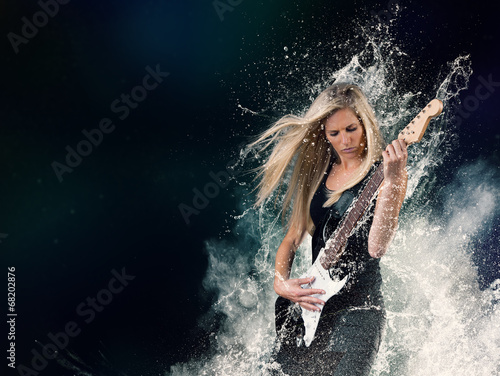 guitar, rock, music, woman, girl, splash, motion, water, powder, smoke, fog, effect, musician, passion, move, black, explosion, bass, fashion, concert, play, active, grunge, hard, dance, caucasian, portrait, star, hair, female, instrument, colours, musical, background, rocker, sound, game, singer, metal, beautiful, sing, chord, heavy, white, blond, show, pop, guitarist, electricity