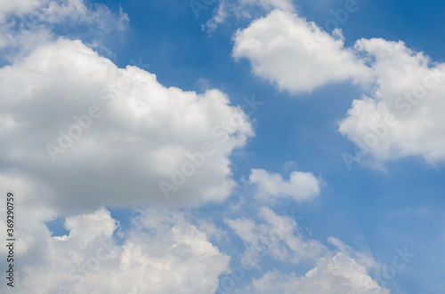 beautiful blue sky and white fluffy cloud horizon outdoor for background.