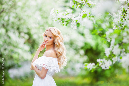 adult, apple tree, attractive, background, beautiful, bloom, blossom, bride, caucasian, curly, cute, dress, fashion, female, floral, flower, garden, girl, green, coiffure, make-up, model, nature, 1, park, portrait, pretty, romantic, spring, style, summer, tree, wedding, white, woman, young