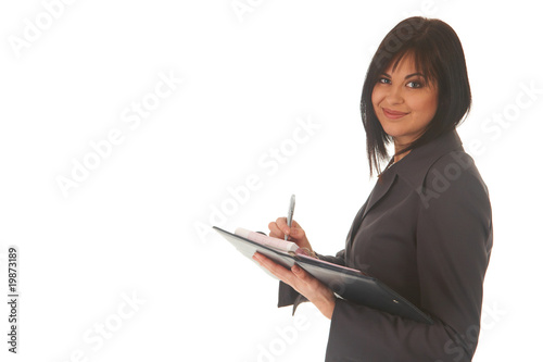woman, businesswoman, female, feminine, person, young, brunette, business, girl, portrait, attractive, beautiful, beauty, caucasian, make-up, make-up, smile, smiling, face, hair, lady, model, pretty, sexy, white, working, work, background, alone, 1, secretary, assistant, executive, professional, successful, human, business suit, clothes, jacket, black hair, short hair, single woman, profession, write, pen, book, diary, daybook
