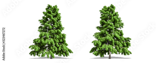 Beautiful Cedrus deodara tree isolated and cutting on a white background with clipping path.