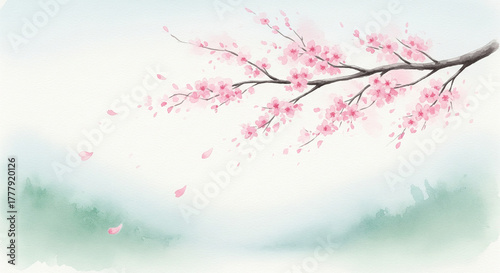 beautiful cherry blossom leaf background with green trees