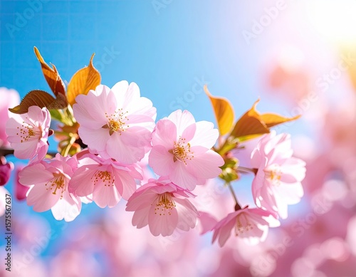 Beautiful cherry blossoms against a clear blue sky