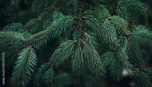 beautiful christmas background with green fir tree brunch close up copy space trendy moody dark toned design for seasonal quotes vintage december wallpaper natural winter holiday forest backdrop