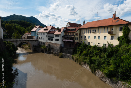 Beautiful city views of the picturesque medieval town of Škofja Loka close to Ljubljana, Slovenia