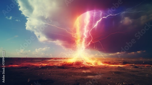 Beautiful Colorful Lightning Strikes in dramatic sky view. AI generated image
