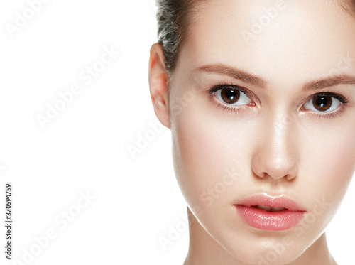 Beautiful face woman natural clean fresh skin young female model face portrait