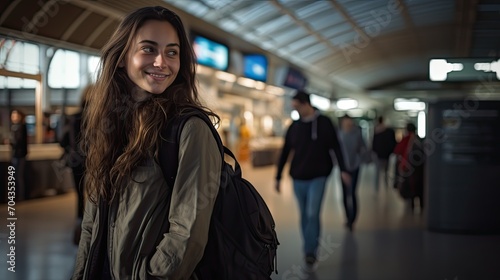beautiful female in the airport traveling at destination