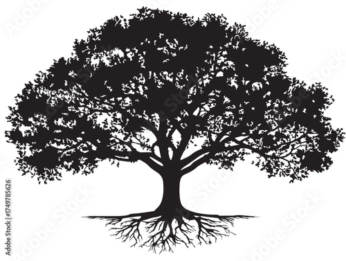 Beautiful Foundation Tree Illustration with Deep Roots in 2D Vector Line Art