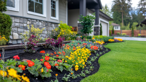 Beautiful front yard landscape design with colorful flowers