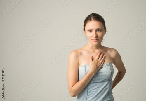 beautiful girl on a gray background