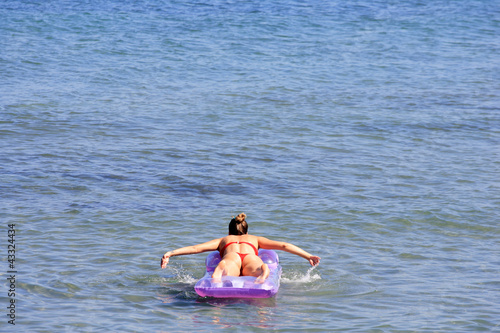Beautiful girl swimming on air-mattress
