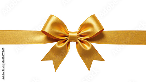Beautiful golden ribbon bow, perfect for gift wrapping or decoration, adds touch of elegance and celebration to any occasion