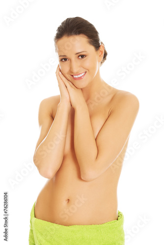 wrapped, towel, female, woman, spa, standing, green, isolated, white, adult, young, beauty, beautiful, 1, caucasian, lady, person, care, body, relaxation, human, attractive, happiness, smile, sensual, background, happy, skin, portrait, lifestyle, healthy, sensuality, clean, smiling, single, brunette, wellness, glamour, treatment, looking, naked, fresh, health, pretty, sexy
