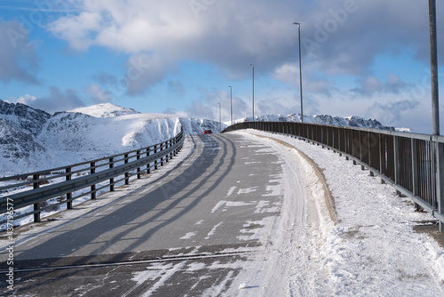 Beautiful landscape from The Fredvang bridges in winter season, Lofoten islands, Norway