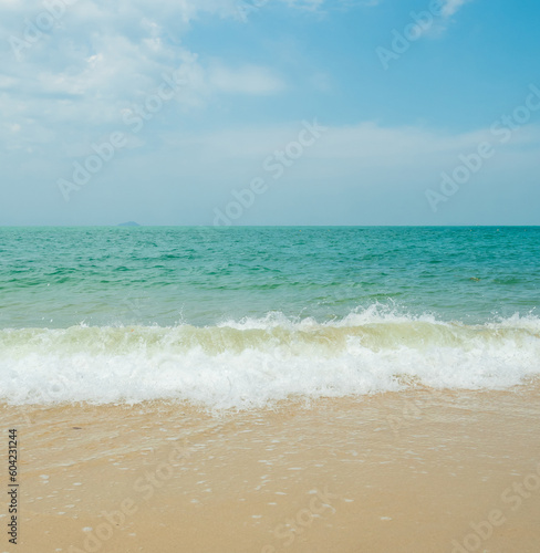 Beautiful Landscape summer panorama front viewpoint tropical sea beach white sand clean and blue sky background calm Nature ocean Beautiful wave water travel Sai Kaew Beach East thailand Chonburi