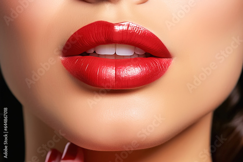 Beautiful lip makeup with red lipstick close-up.