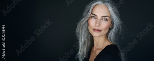 beautiful mature well-groomed woman with natural makeup, with beautiful gray hair.