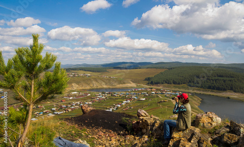 healthy lifestyle, countryside, birding, binocular, rock, baseball cap, vest, active, adult, adventure, ageing, ascent, attractive, beauty, clothes, cloud, colourful, emotion, face, far, fatigue, forest, happy, healthy, hike, hiker, hiking, hill, journey, landscape, leisure, lifestyle, motion, mountain, nature, optimism, outdoors, park, peak, recreation, ridge, scenic, taiga, tour tourism, holiday maker, travel, traveler, trekking