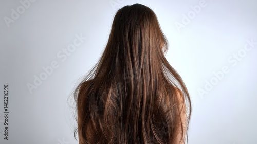 Beautiful model girl with Brown hair strand,silky healthy chestnut wavy hair strand,hair wavy ribbon, with smooth,Keratin straightening,Treatment,straight long hair,procedures,Smooth hairstyle.