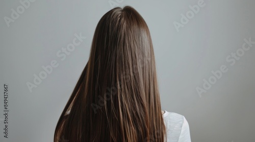 Beautiful model girl with shiny brown and straight long hair isolate in white background