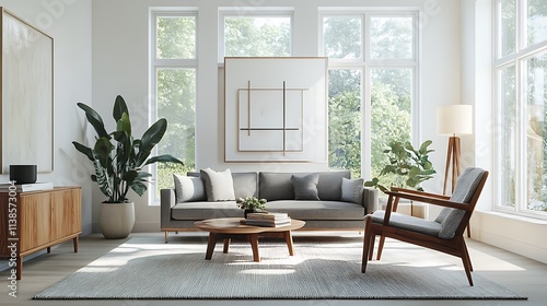Beautiful Modern Living room Interior with furniture's ,mockup frame , posters, wall -3d Rendering