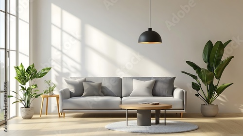 Beautiful Modern Living room Interior with furniture's ,mockup frame , posters, wall -3d Rendering