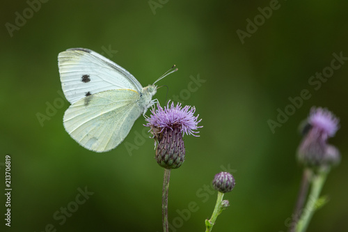 Beautiful nature scene with Large White (Pieris brassicae) on the flower. Large White (Pieris brassicae) in the nature habitat.