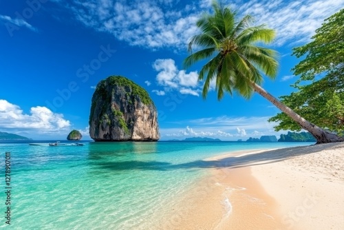 Beautiful nature scenic landscape Koh Lao Lading island beach with boats for traveler, Famous place tourist travel Krabi Phuket Thailand summer holiday vacation trips, Tourism destination scenery