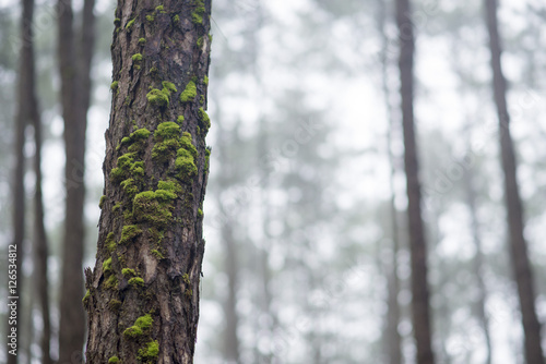 Beautiful Pine bark in pine forest with moss