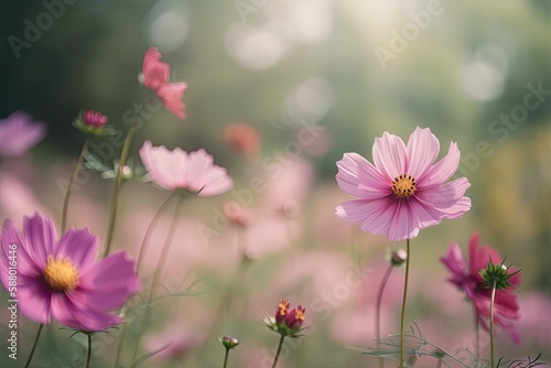 Beautiful Pink flowers on blurred background. Generative Ai.