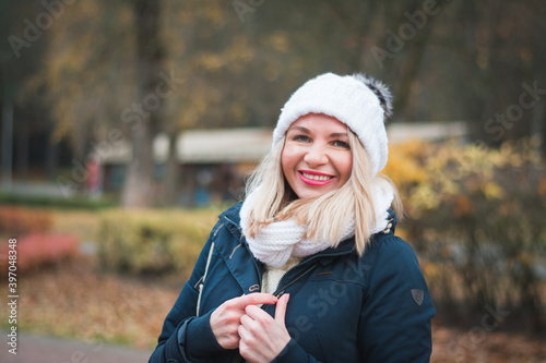 beautiful, portrait, autumn, city, cloudy, weather, lifestyle, caucasian, fashion, cheerful, adult, beautiful woman