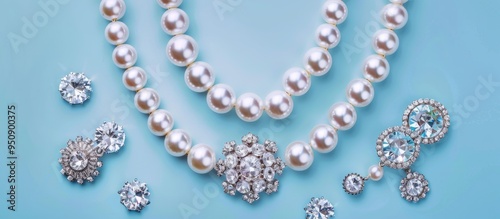 beautiful, precious, shiny, jewellery, trendy, glamourous, necklace, earring, ring, chain, pearl, diamond, blue, background, flat, lay, top, view, copy, place, luxurious, fashion, accessory, elegant, design, style, decorative, gemstone, chic, sophisticated, upscale, opulent, display, composition, timeless, exquisite, artistry, collection, sparkle, shine