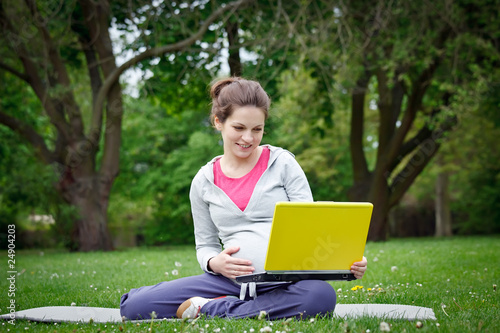 pregnancy, pregnant, white, caucasian, woman, joy, new life, day, sitting, abdomen, park, forest, outdoors, grass, tree, beauty, beautiful, relaxing, relaxation, positive, expecting, young, female, healthy, mother, brunette, nature, fertility, anticipation, love, femininity, adult, laptop, notebook, computer, maternity, motherhood, eltern, parenthood, belly, green, smiling, smile