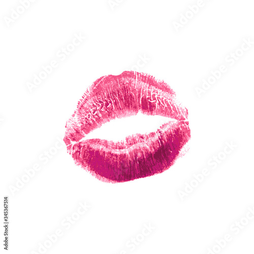 Beautiful realistic pink lips kiss isolated on white background. Lipstick vector mark.