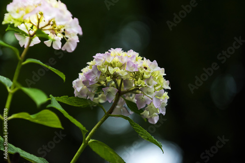 Beautiful red and pink color Hydrangea macrophylla flowers in the garden at early summer.