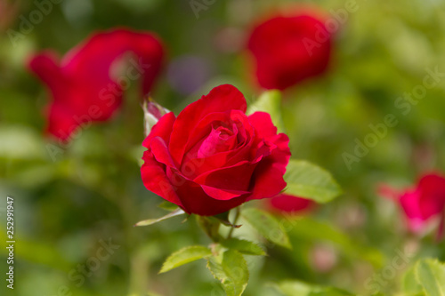Beautiful red rose in summer garden