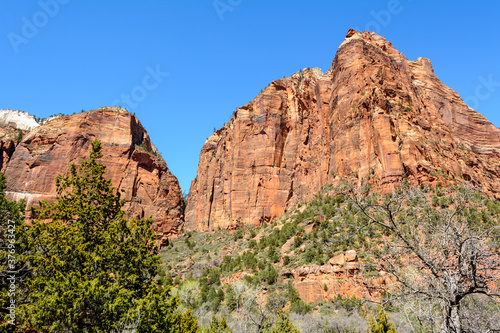 Beautiful scenery in Zion National Park located in the USA in southwestern Utah.